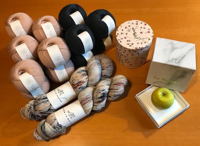 Butin de la journée : du Thé Marie-Antoinette de chez Ladurée, une pomme de Cédric Grolet, quelques pelotes de Kréa Deluxe, une maison danoise et 2 écheveaux teints à la main par Miss La Motte, une sud-africaine ! Le bonheur !